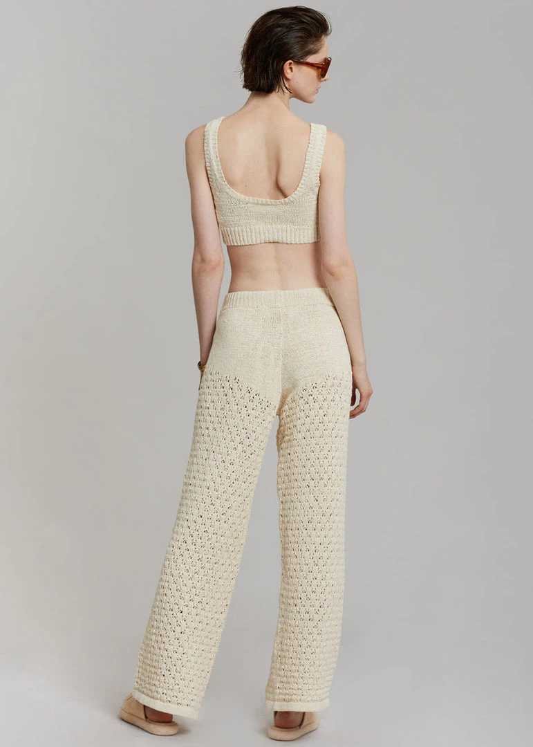 Open crochet knit on legs