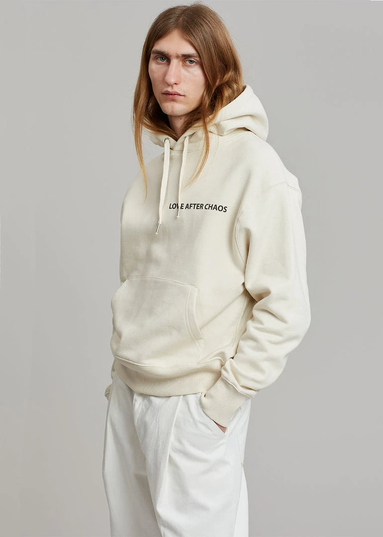 “Love After Chaos” graphic at chest